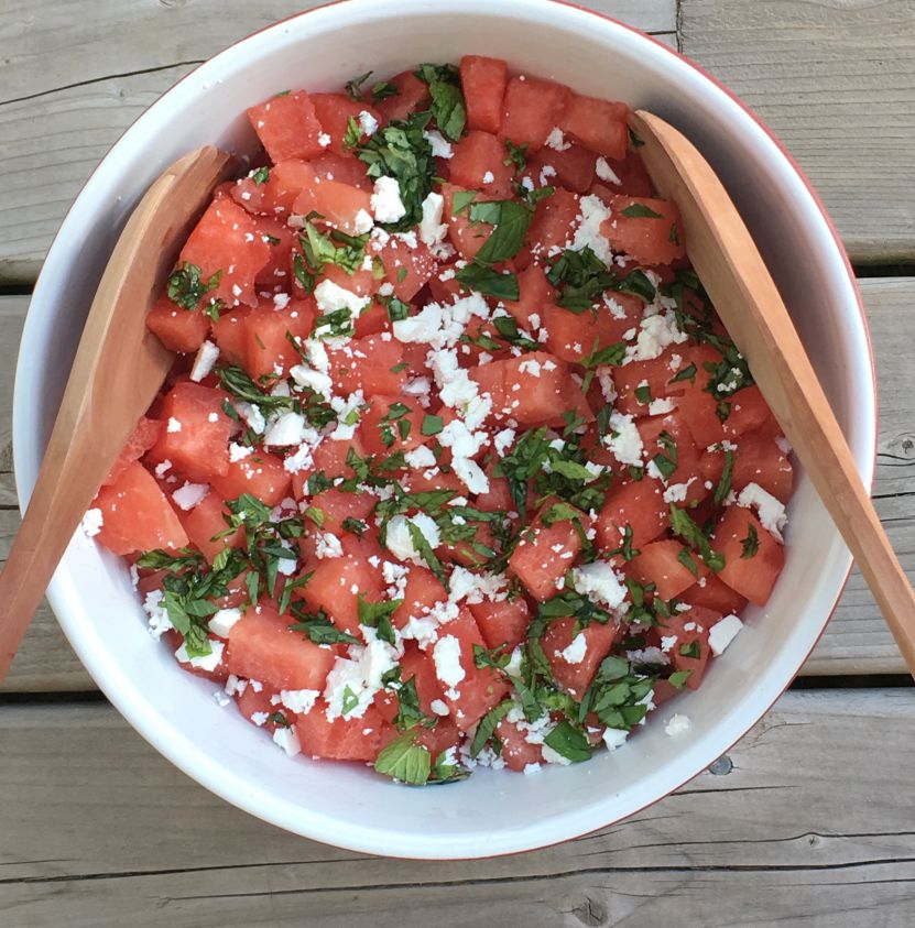 If your looking for a easy to make salad that is also a crowd pleaser well watermelon salad is a perfect salad. Whenever I make this salad I get tons of compliments. The combination of fresh basil and mint with watermelon make this salad it a perfect potluck salad. I make this salad when I want something quick and I know everyone will love. Sometimes, I add some baby arugula, the combination of sweet watermelon and peppery arugula makes a perfect summer salad.