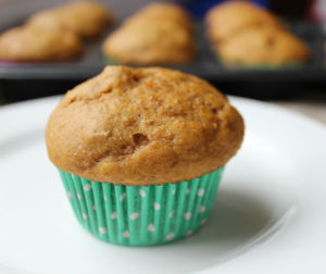 I am blessed with a three year old daughter, who loves to roll up her sleeves in the kitchen. This week she informed me we were making pumpkin muffins. So we made pumpkin muffins three ways. I also have a baby, almost one, whom I want to keep away from sweet food as long as possible and I wanted to remove all choking hazards, hence the plain pumpkin muffins. Secondly, I like adding nuts to baked goods, hence the pumpkin, apple muffins with toasted walnuts and raisins. Thirdly, what’s a muffin without chocolate chips, hence pumpkin, apple muffins with chocolate chips.