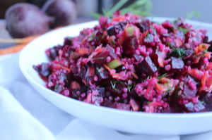 Beets should  make be a regular appearance on your grocery list, they are deliciously sweet and nutrient dense. If, I believed in the term “superfood“, beets would certainly win my vote. Beets are rich in antioxidants, fibre, folate, vitamins and minerals. Furthermore, the pigment that gives these root vegetables their beautiful color, is full of antioxidants, which have anti-inflammatory and cancer fighting properties and aids in the liver detoxification process. Beets are extremely versatile , add them to smoothies, pancakes, hummus, veggie burgers and or roast them and make this salad.